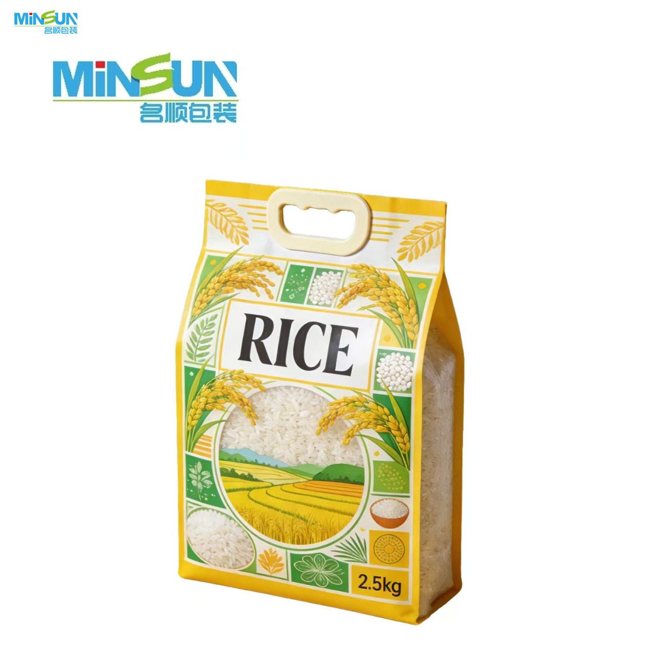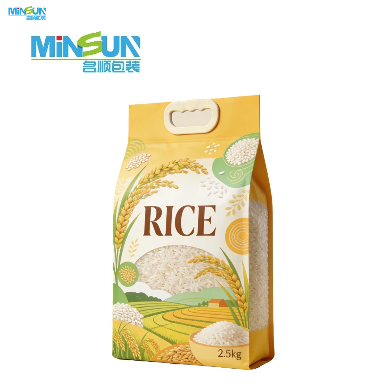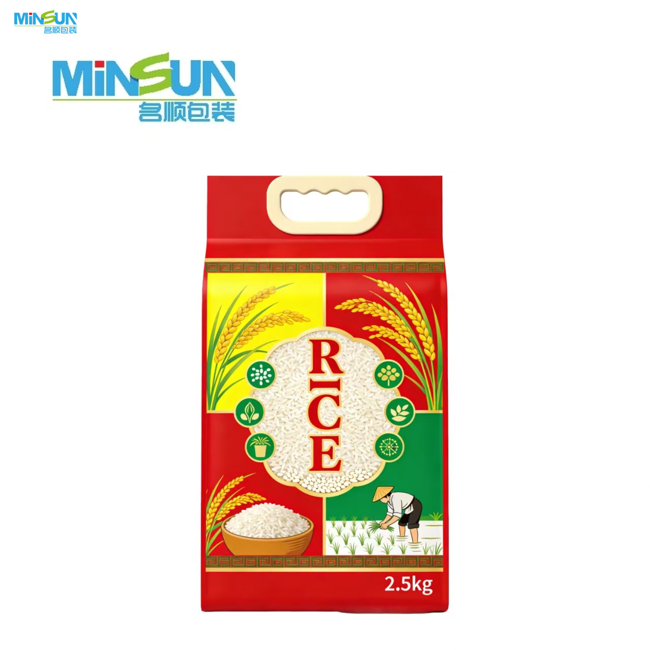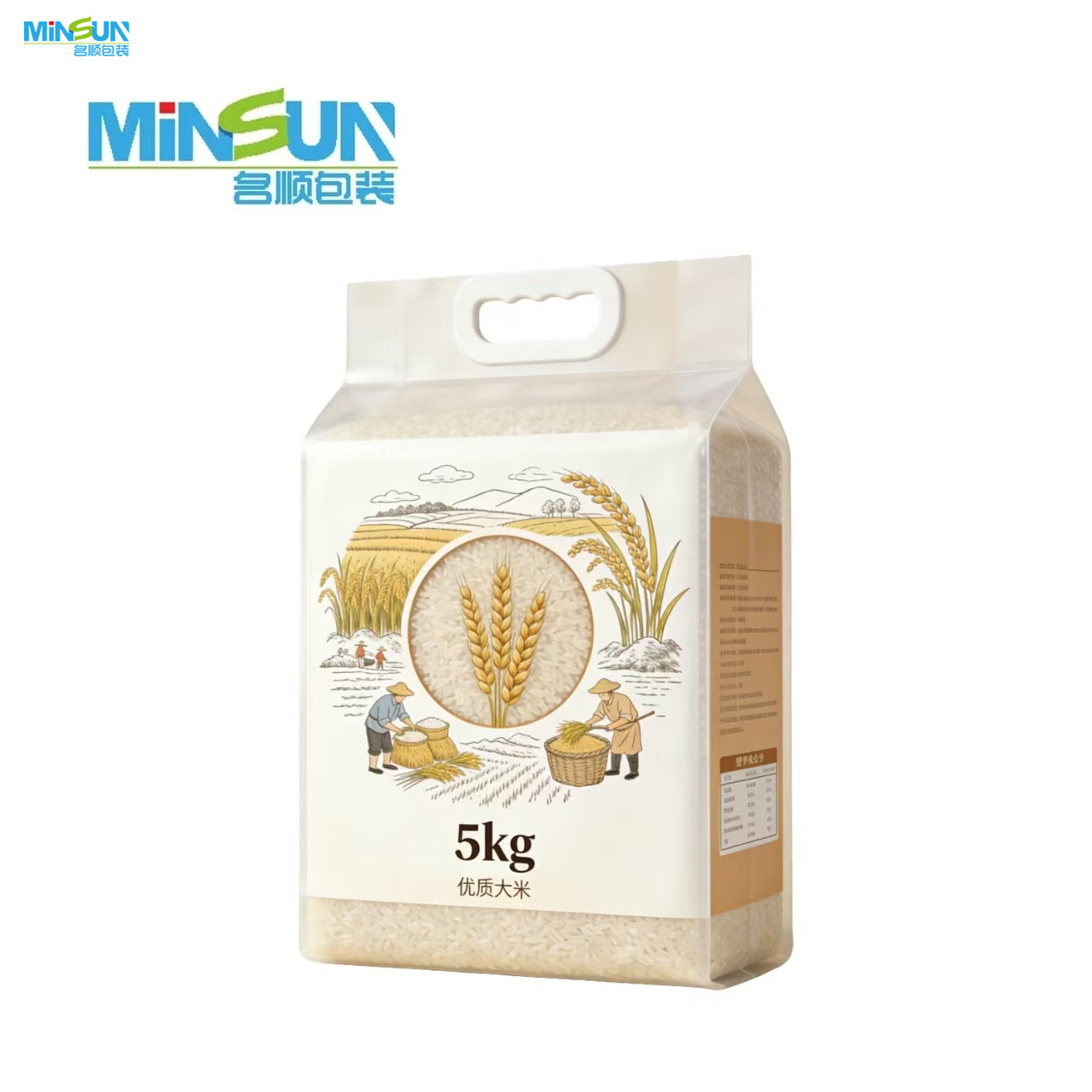 The China Custom Supplier Strong Waterproof Standup Pouch for Rice Rice Bag is a premium food‑grade packaging solution developed by Guangdong Min Sun Environmental Protection Packaging Technology Co., Ltd. Designed for durability, freshness protection, and strong shelf appeal, this pouch combines advanced laminated materials with customizable structural features. It is suitable for a wide range of rice products, from daily household rice to premium gift‑grade varieties. With its waterproof construction, stand‑up stability, and customizable printing, the pouch supports both functional performance and brand visibility in competitive retail environments.