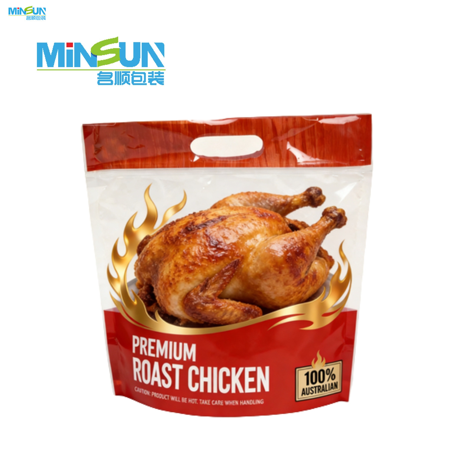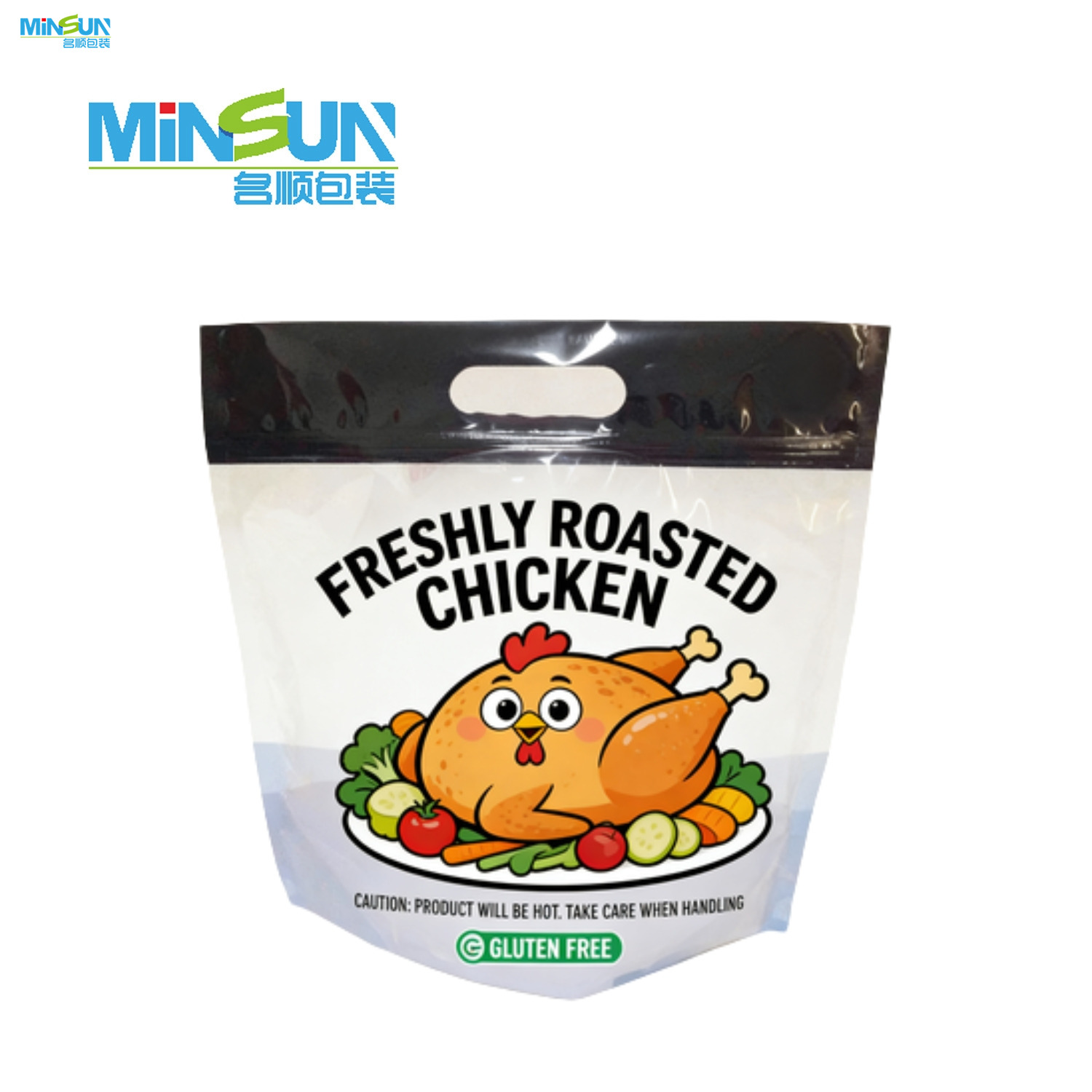 The anti-fog stand up takeaway roast chicken packaging bag is designed for hot food packaging.