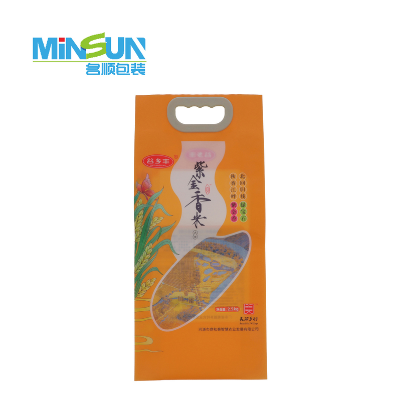 The China Manufacturer Wholesale Custom Food Packaging Handle Rice Bag from Guangdong Min Sun Environmental Protection Packaging Technology Co., Ltd. is designed to provide reliable, attractive, and safe packaging for rice and other food products. Built with high‑quality laminated materials and supported by advanced production technology, this packaging solution offers durability, convenience, and strong shelf appeal. It is suitable for retail brands, food processors, wholesalers, and businesses seeking customizable and professional rice packaging.