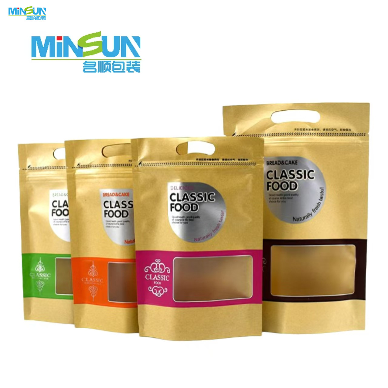 The Custom Eco Brown Kraft Paper Food Zipper Pouch from Guangdong Min Sun Environmental Protection Packaging Technology Co., Ltd. is a reliable, sustainable, and practical packaging solution designed for a wide range of food and non-food applications. Crafted with high-quality kraft paper and advanced laminated materials, this pouch provides both environmental benefits and functional performance for modern packaging needs.