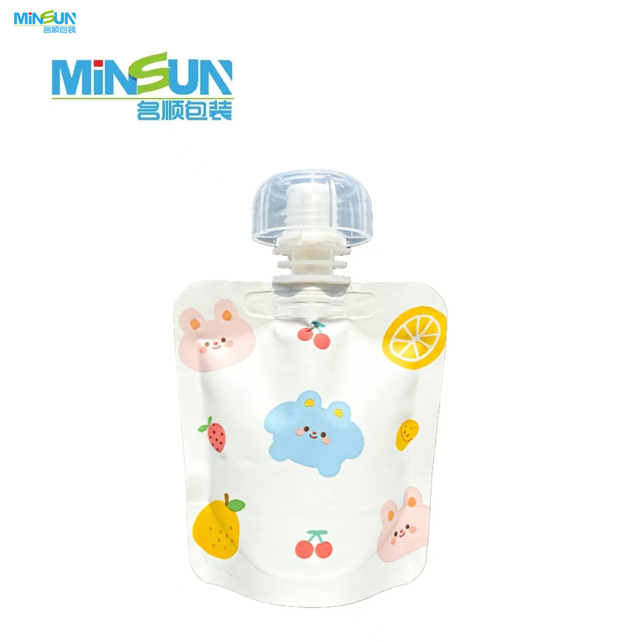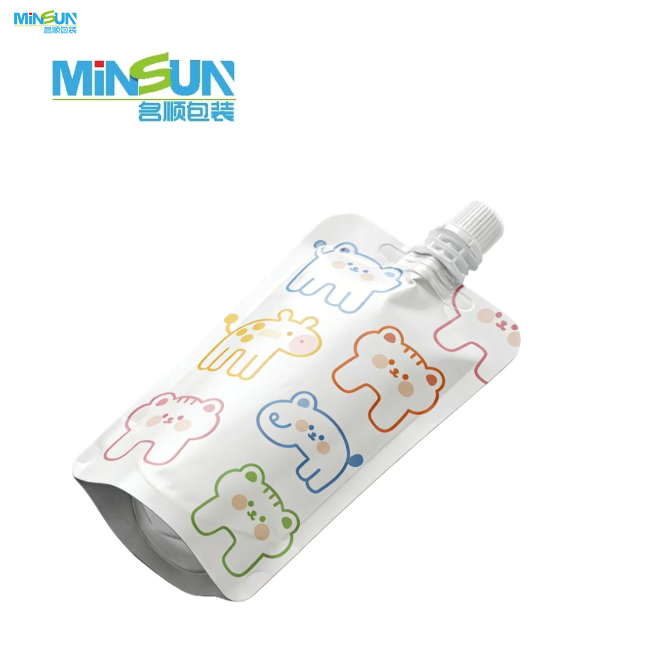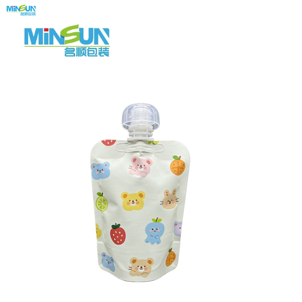 The Supplier Custom China Food Grade Refillable for Juice Leak Proof Spout Pouch from Guangdong Min Sun Environmental Protection Packaging Technology Co., Ltd. is designed to provide a safe, convenient, and reliable packaging solution for juice, jelly, puree, and other liquid or semi‑liquid foods. Built with high‑quality laminated materials and supported by advanced manufacturing technology, this pouch delivers strong barrier protection, excellent durability, and user‑friendly functionality. It is suitable for brands seeking customizable, eco‑conscious, and high‑performance packaging.