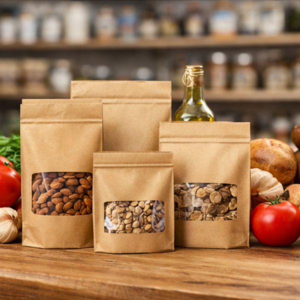 A: Kraft paper bags with window provide visual transparency, allowing consumers to assess product quality, which can increase trust and drive sales. This packaging style is ideal for industries where product visibility is key, such as food and retail.